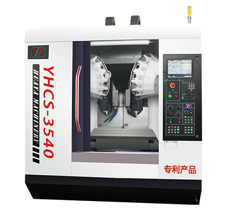 高速雙主軸鉆攻中心 YHCS-3540,機(jī)床配置雙刀庫(kù),提高加工刀具使用效率,有利于復(fù)雜零件多工序加工。機(jī)床配置雙高速主軸,可一次性加工兩個(gè)相同零件,提高100%加工效率。適用于新能源汽車、LED、3C、通訊、五金等精密零件加工。